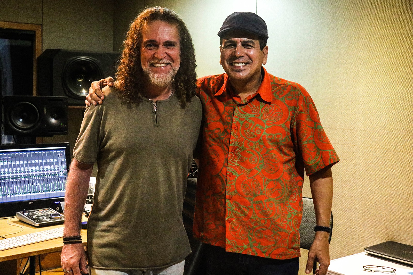 ♪ A foto acima flagra Sérgio Andrade (à esquerda) – líder e membro fundador da Banda de Pau e Corda – com o Maestro Spok em estúdio do Recife (PE). Com participação de Spok, o grupo pernambucano grava composição inédita de Andrade.