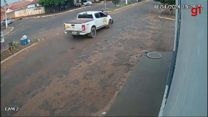 No vídeo é possível ver que a caminhonete e a moto batem no meio do cruzamento da Avenida Cruzeiro do Sul. Por causa do impacto, o motociclista é jogado para a calçada de um estabelecimento. Em seguida, o motorista e o passageiro que estavam na caminhonete descem e vão em direção à vítima.