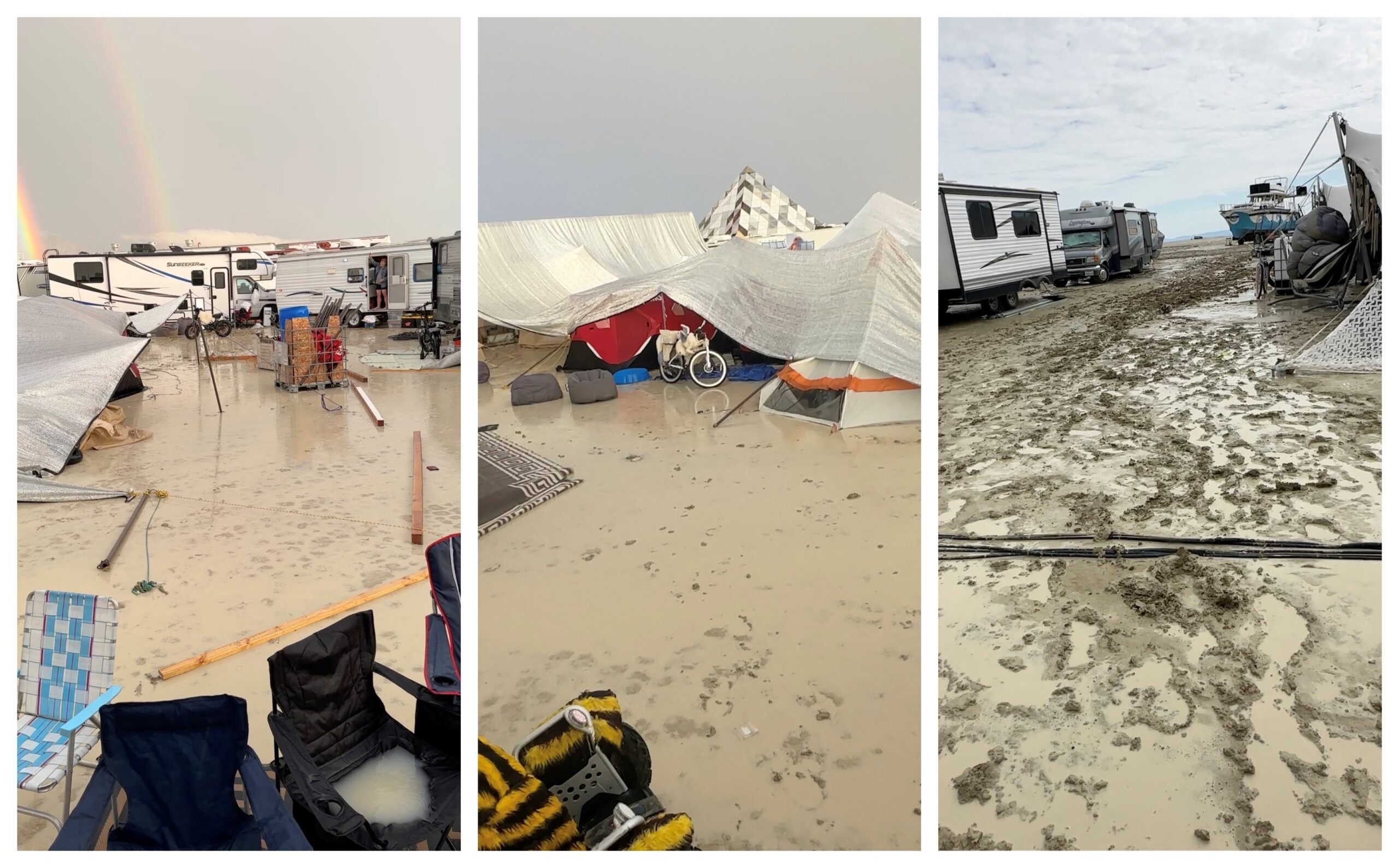 Todos os anos uma espécie de ‘cidade’ temporária é erguida para o Burning Man. A mídia local relatou que havia mais de 70 mil pessoas lá. Imagens do local do Burning Man enlameado