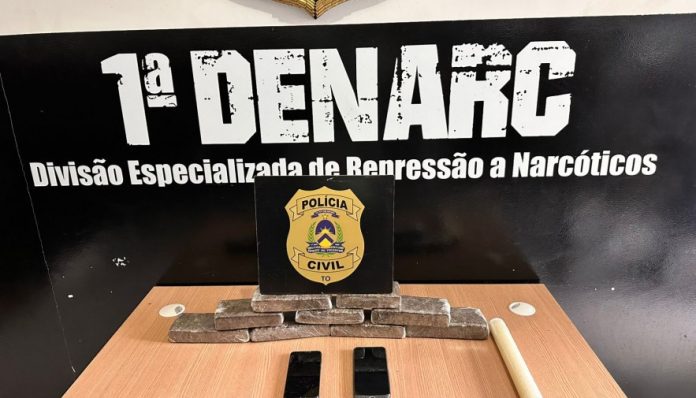 Um dos suspeitos tinha condenação por homicídio cometido em Palmas. Dupla utilizava uma casa no Jardim Taquari para atividades do tráfico. Nove tabletes, totalizando 5kg de maconha, foram apreendidos pela DENARC – Palmas