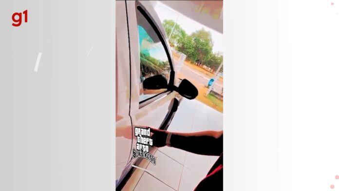 Nas imagens o suspeito diz: ‘bora assaltar o carro da polícia’. Ele entra, pega o cartão e depois comemora em outro local: “É nada, paizão. Perdeu, perdeu. Esquece. O pai agora vai ter combustível à vontade”, diz no vídeo.